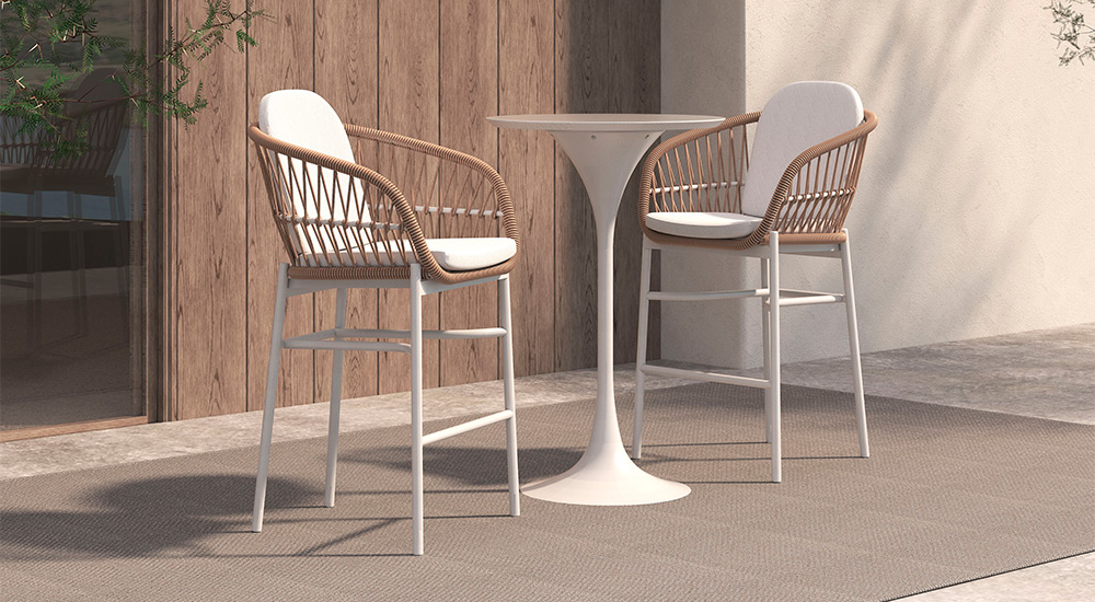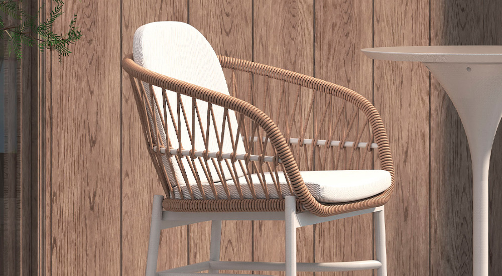 Ideal para galerías o exterior. Confeccionada en aluminio anodizado pintado a horno y tejida con hilo náutico de alta resistencia. Incluye almohadón desmontable para mayor confort en un género outdoor, resistente a los rayos uv y protección antimicótico.