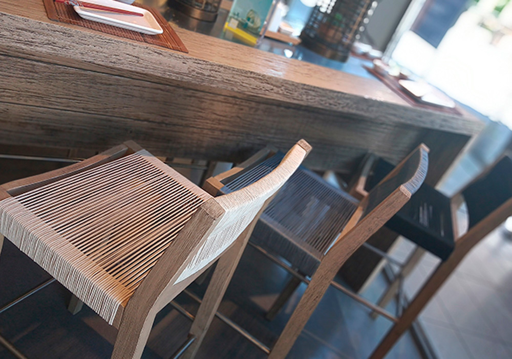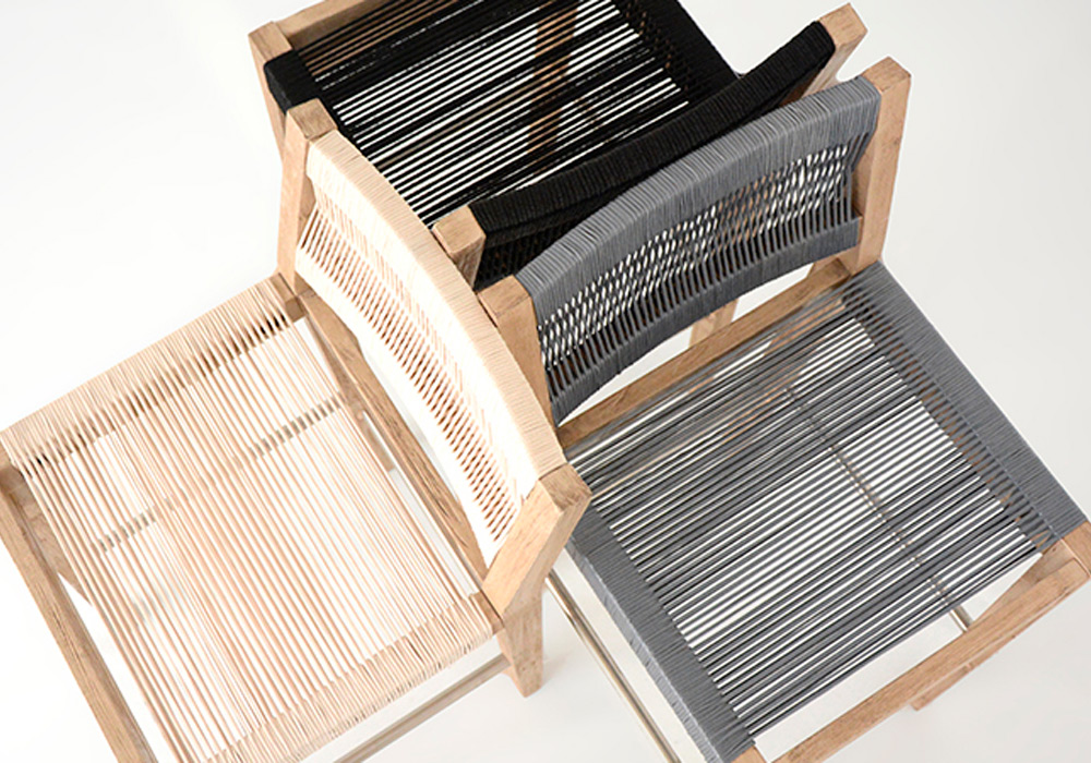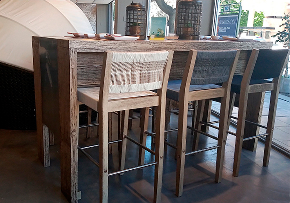 Para espacios semi cubiertos ya que está fabricada en madera maciza con terminación envejecida, con asiento y respaldo tejidos en tiento náutico.