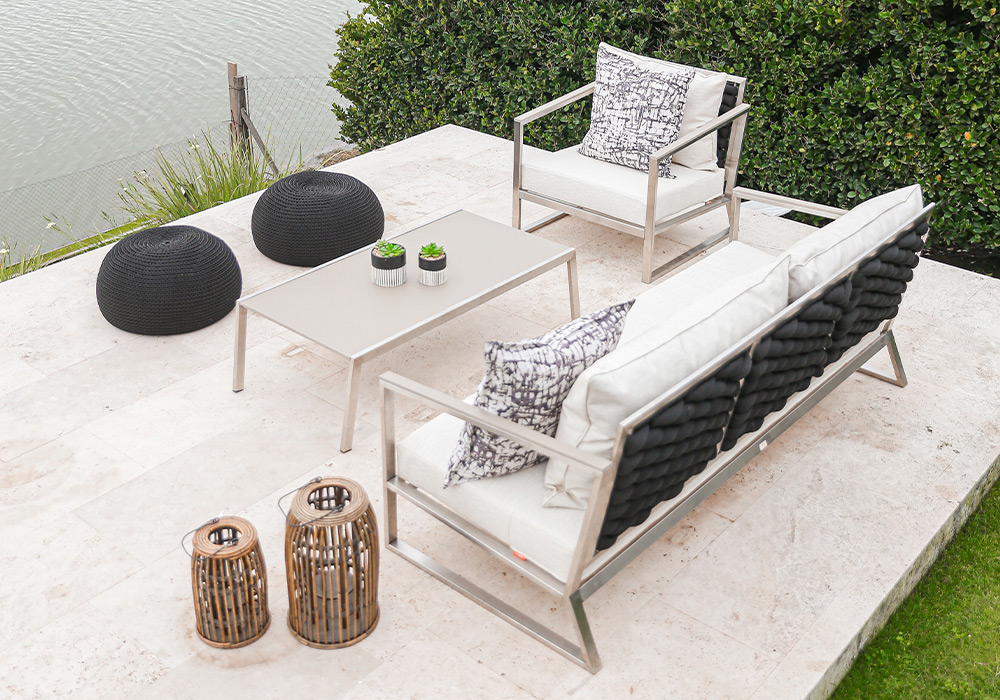Ideal para exterior total. Fabricado en acero inoxidable con detalles de placa italiana importada. Materiales sin necesidad de mantenimiento.