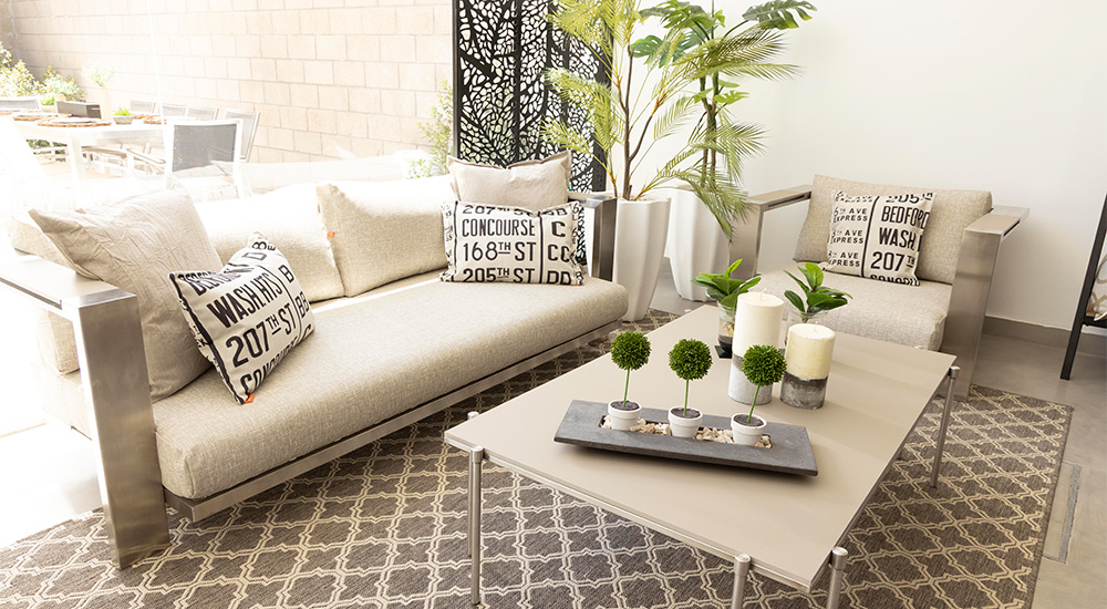 Fabricado en acero inoxidable con detalles de placa italiana. Tapicería Outdoor con filtro UV y protección antimicótica.