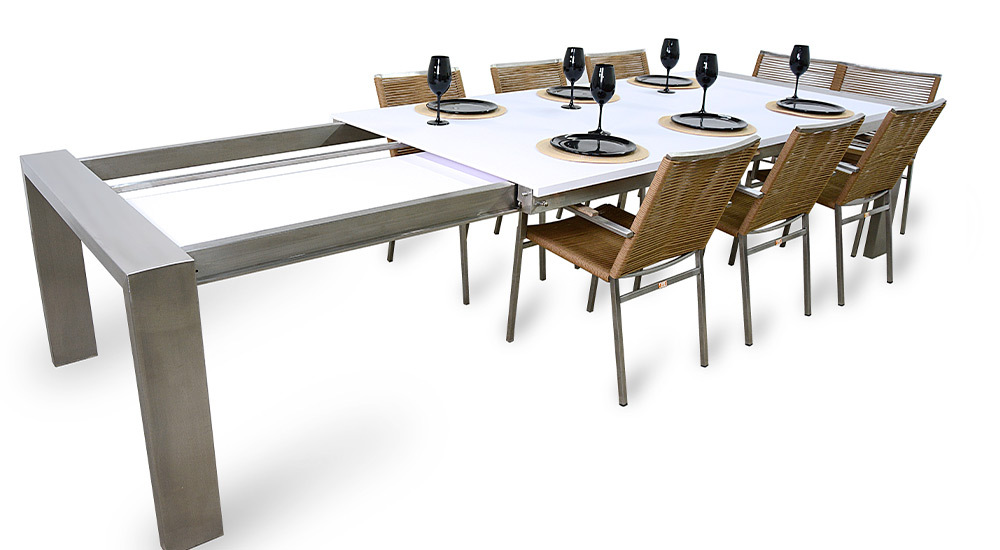 Modelo apto para exterior total. Estructura de acero inoxidable combinado de una tapa superior de placa italiana importada confeccionada en materiales de alta resistencia.