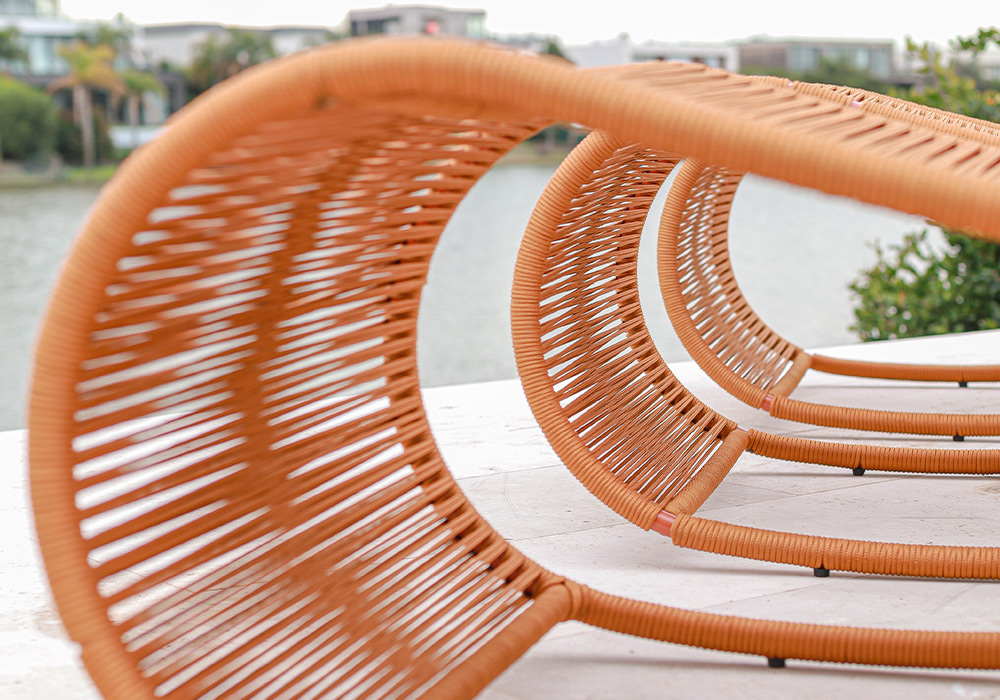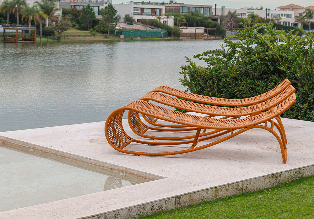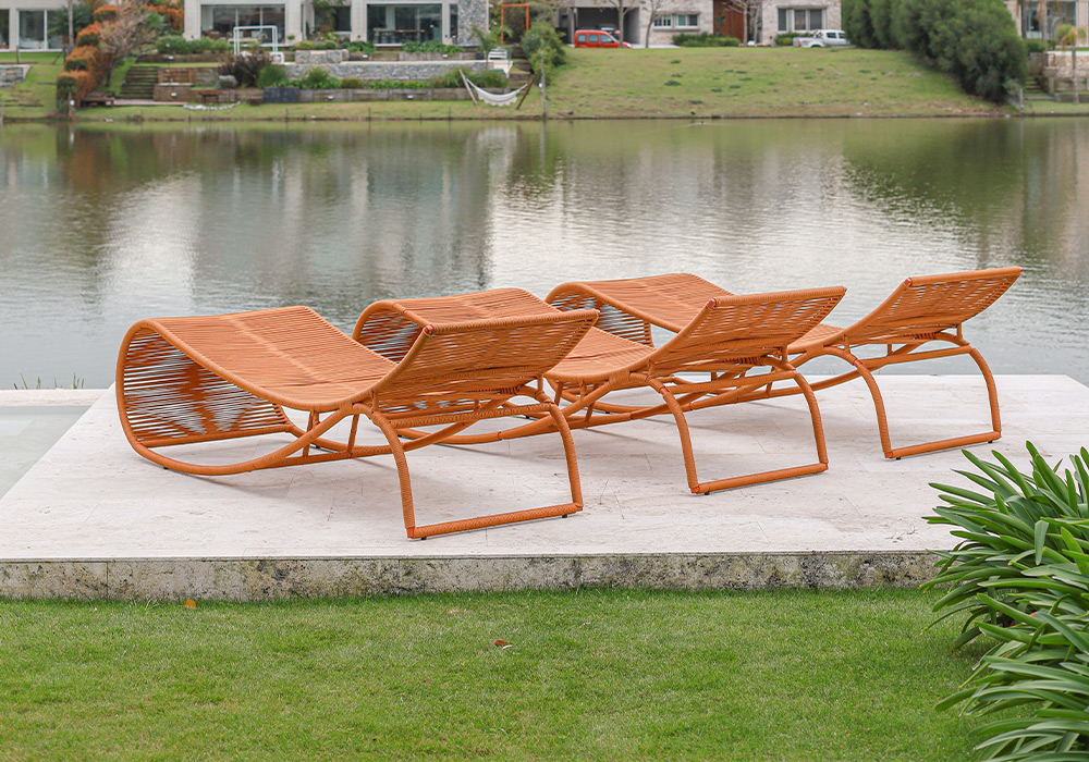 Apta para exterior total. Tiene una estructura fabricada en aluminio anodizado pintado a horno y tejido con hilo náutico de alta resistencia.
