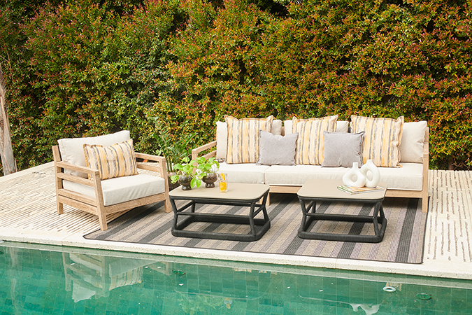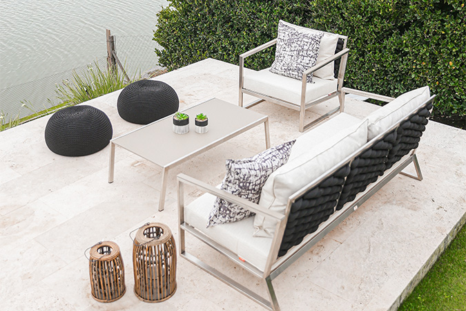 De líneas modernas, MAUI combina estructura de aluminio y cuerdas de poliéster, ofreciendo comodidad y elegancia para espacios exteriores urbanos.