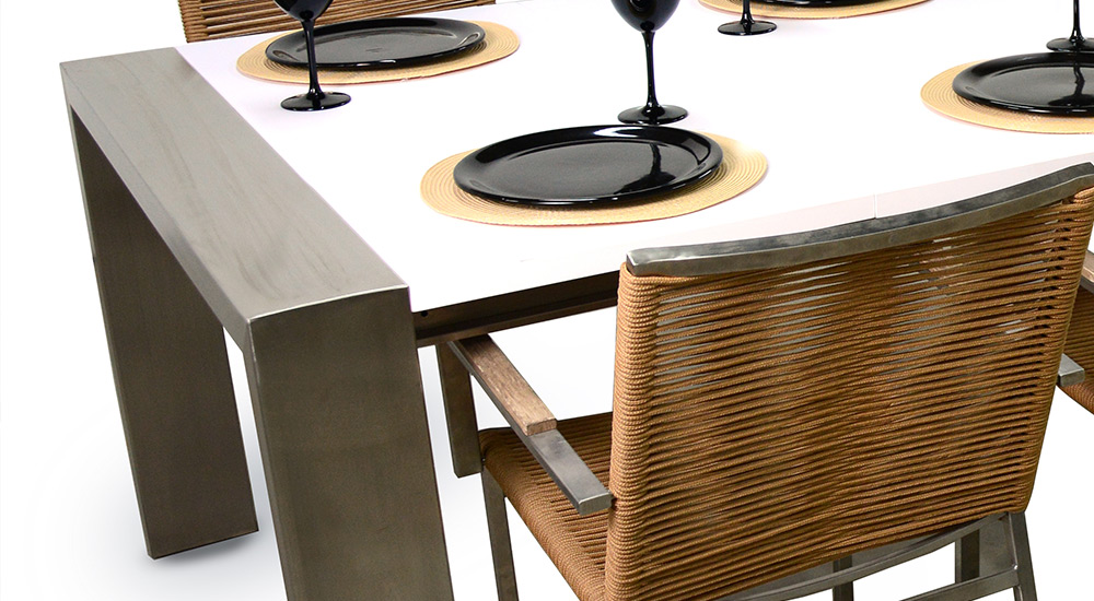 Modelo apto para exterior total. Estructura de acero inoxidable combinado de una tapa superior de placa italiana importada confeccionada en materiales de alta resistencia.