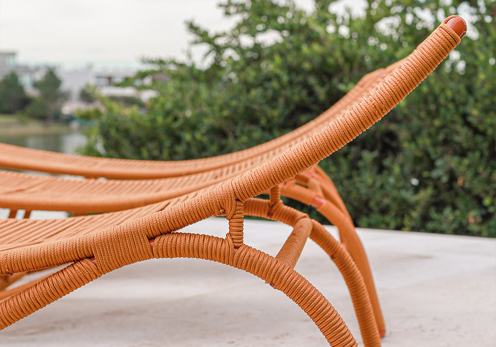 Apta para exterior total. Tiene una estructura fabricada en aluminio anodizado pintado a horno y tejido con hilo náutico de alta resistencia.